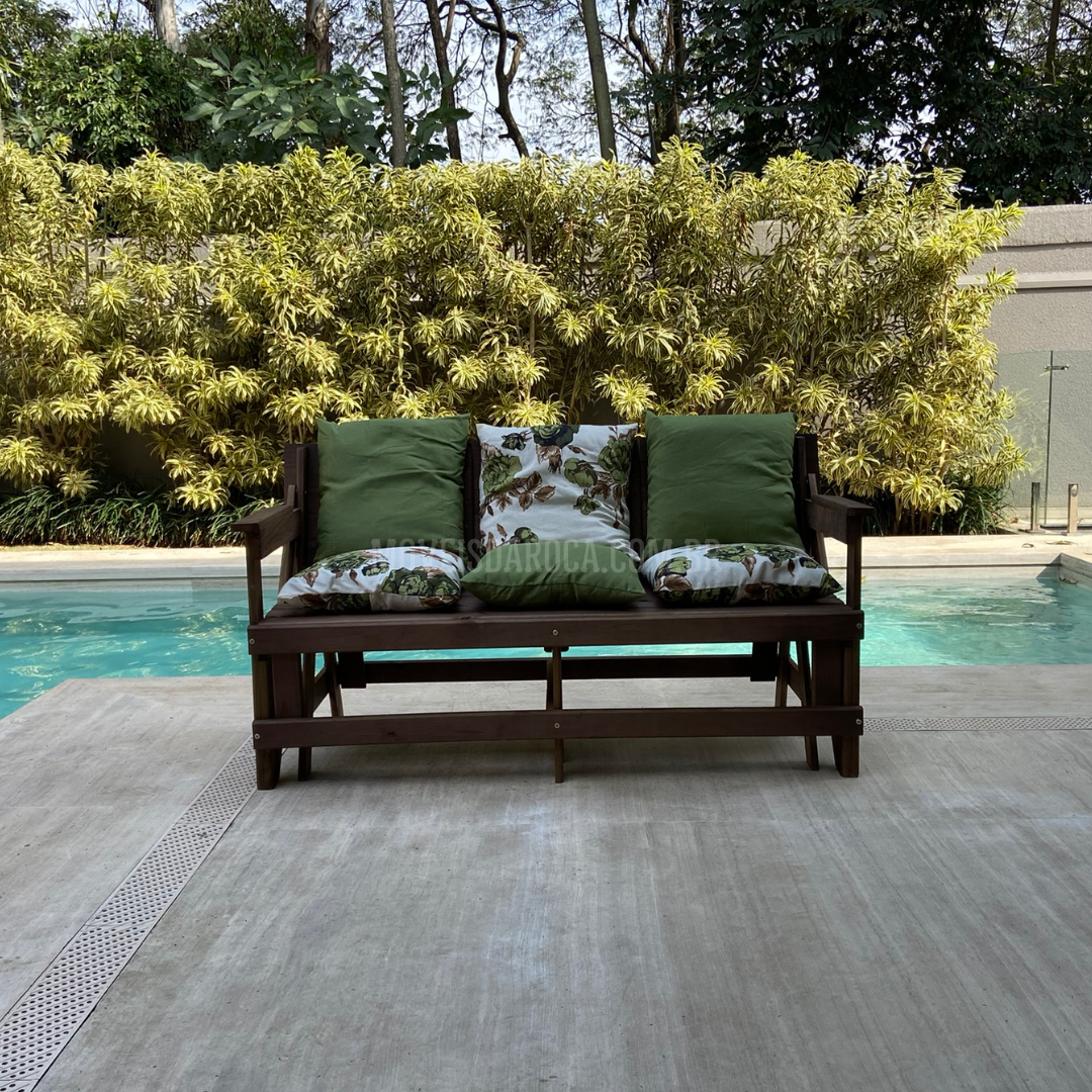 Esse kit acompanha Banco Que Vira Mesa 6 lugares + 6 almofadas.